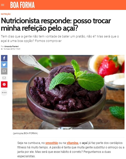 Matéria sobre os benefícios do açaí com nutricionista consultora da loja Açaí 61