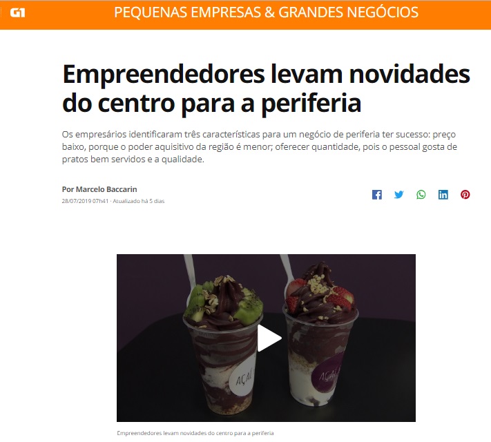 A loja Açaí 61 em matéria sobre empreendedorismo na periferia, no programa Pequenas Empresas Grandes Negócios, da TV Globo